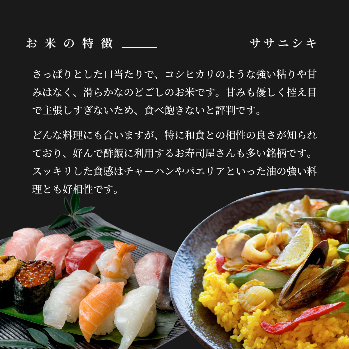 「お寿司用」「お弁当用」など、料理に合わせてお米を使い分ける贅沢に楽しみ下さい。
